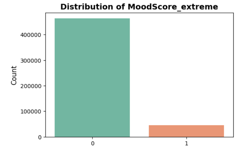 Distribution of ‘Mood Score’ after converting into a binary feature: