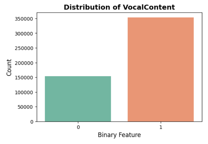 Distribution of ‘Vocal Content’ after converting into a binary feature: